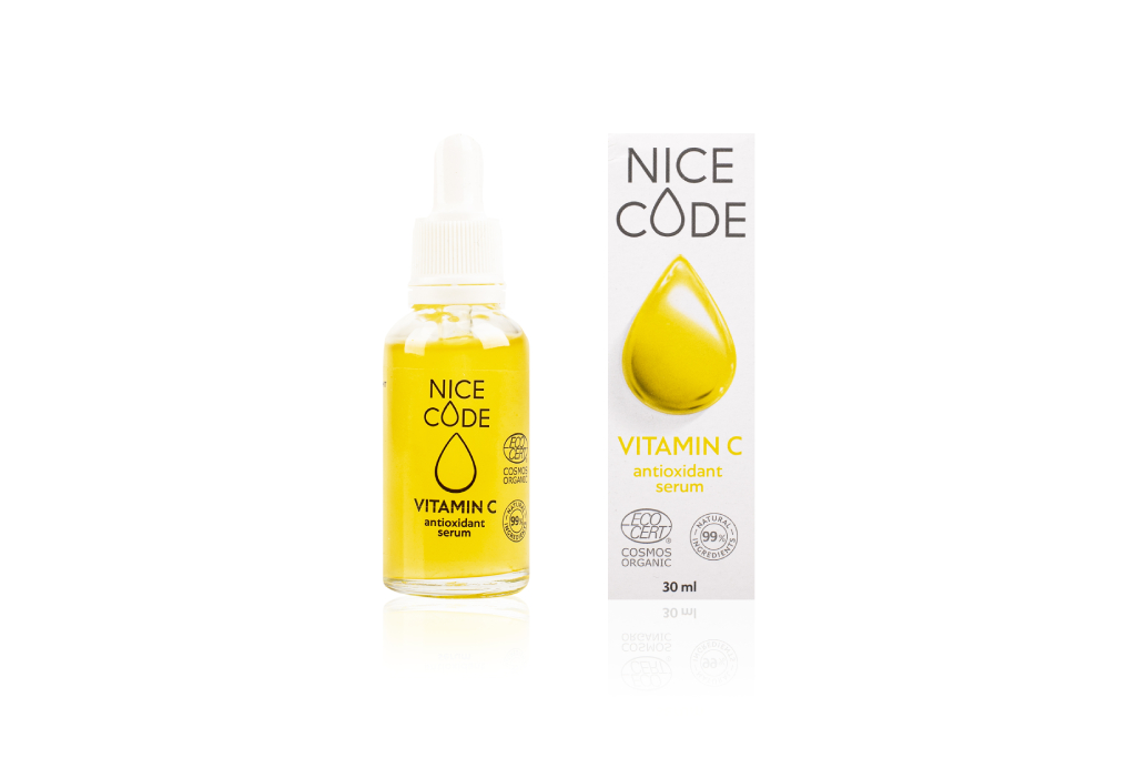 Активный антиоксидантный комплекс сыворотки NICE CODE VITAMIN C antioxidant serum предотвращает преждевременное старение, усиливает защитный барьер кожи и способствовать естественному увлажнению.